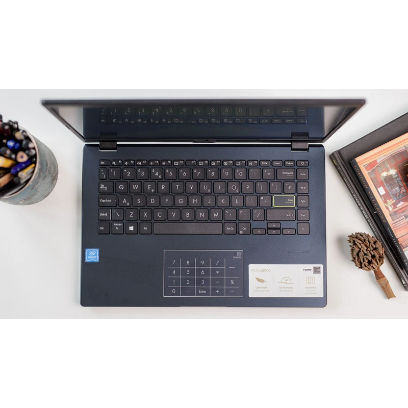 ایسوس تلاش کرده است تنوعی در طراحی بیرونی لپتاپ ایجاد کند، بهنحوی که کاربر میتواند بین دو طرح مختلف درب پشتی انتخاب کند. این ظرافت کوچک نشان میدهد ایسوس به جنبههای ظاهری و سبک شخصی کاربران توجه ویژه دارد. با وزن ۱.۳ کیلوگرم و ضخامت ۱۸.۴ میلیمتر، لپتاپ در دسته مدلهای سبک و قابلحمل قرار میگیرد، برای دانشجویان و کسانی که مدام لپتاپ را همراه خود دارند، بسیار کاربردی است. بدنه از پلاستیک ساخته شده که اگرچه به لوکسی فلز نیست، اما مقاومت مطلوبی در برابر ضربات و سایشهای سبک دارد. قابلیت چرخش لولای نمایشگر به صورت ۱۸۰ درجه هم میتواند این لپتاپ را به یک تبلت ویندوزی تبدیل کند که خالی از لطف نیست. در مجموع، طراحی مینیمال و ساده آن بر جذابیت ظاهری دستگاه میافزاید و طیف گستردهای از کاربران را جذب میکند. کیبورد این لپتاپ از نوع جزیرهای است و به دلیل ابعاد ۱۴ اینچی دستگاه، فضای نامبرپد فیزیکی حذف شده است. اما راهحل خلاقانه ایسوس این است که تاچپد دستگاه با لمس یک دکمه یا کشیدن ژست مخصوص، به نامبرپد دیجیتال تبدیل شود و امکان تایپ اعداد را فراهم کند.