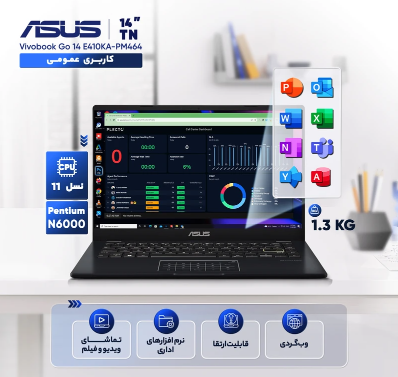 سری Vivobook ایسوس به داشتن لپتاپهای سبک، خوشقیمت و کارآمد معروف است. ایسوس Vivobook Go 14 نیز در پی تحقق همین هدف طراحی شده است؛ ارائه دستگاهی جمعوجور و اقتصادی برای کاربریهای روزمره و دانشجویی. با توجه به استفاده از پردازنده اینتل Pentium Silver N6000 و بدنه پلاستیکی سبک، این لپتاپ میتواند یک گزینه اقتصادی و مناسب برای کسانی باشد که به دنبال یک لپتاپ برای کارهای سبک و روزمره هستند.